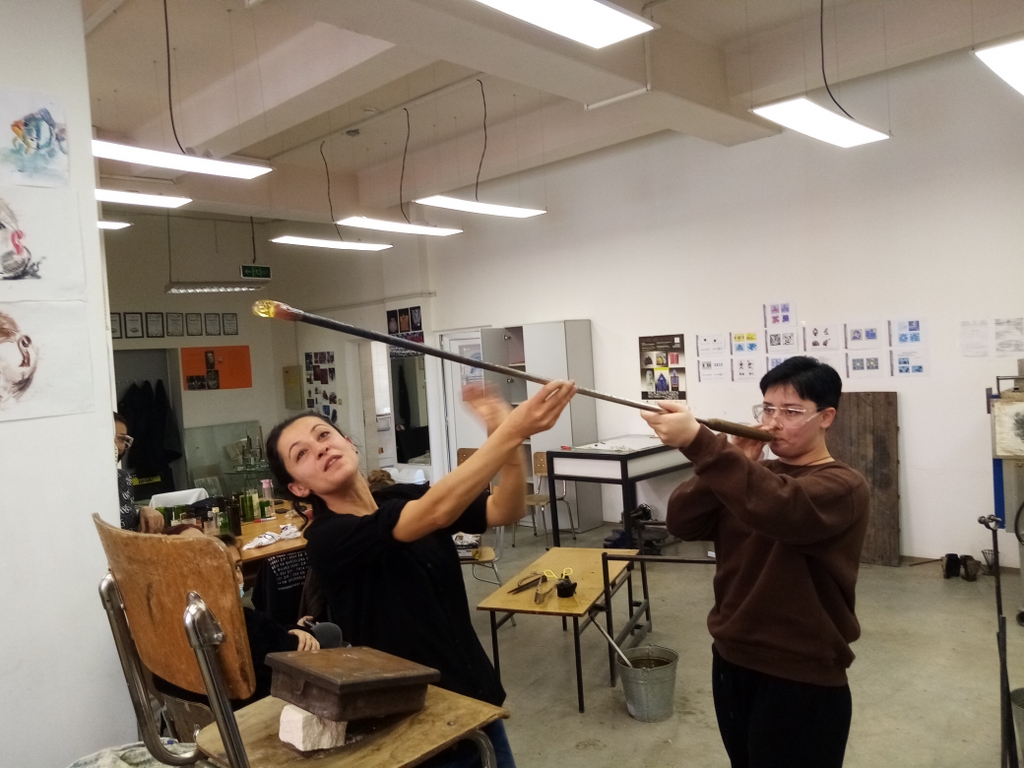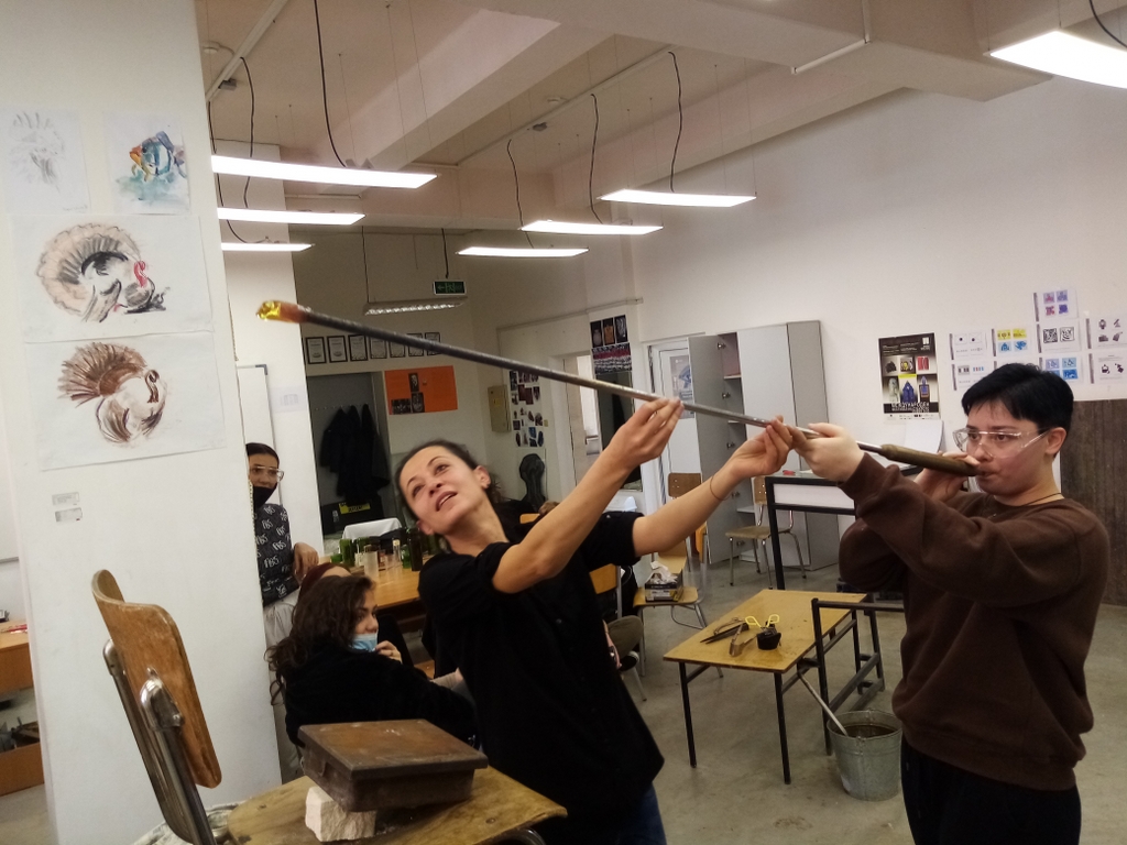 Praktična nastava - Bugarska - demonstracija puhanja stakla